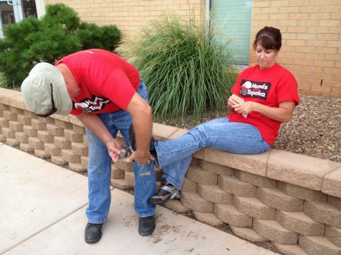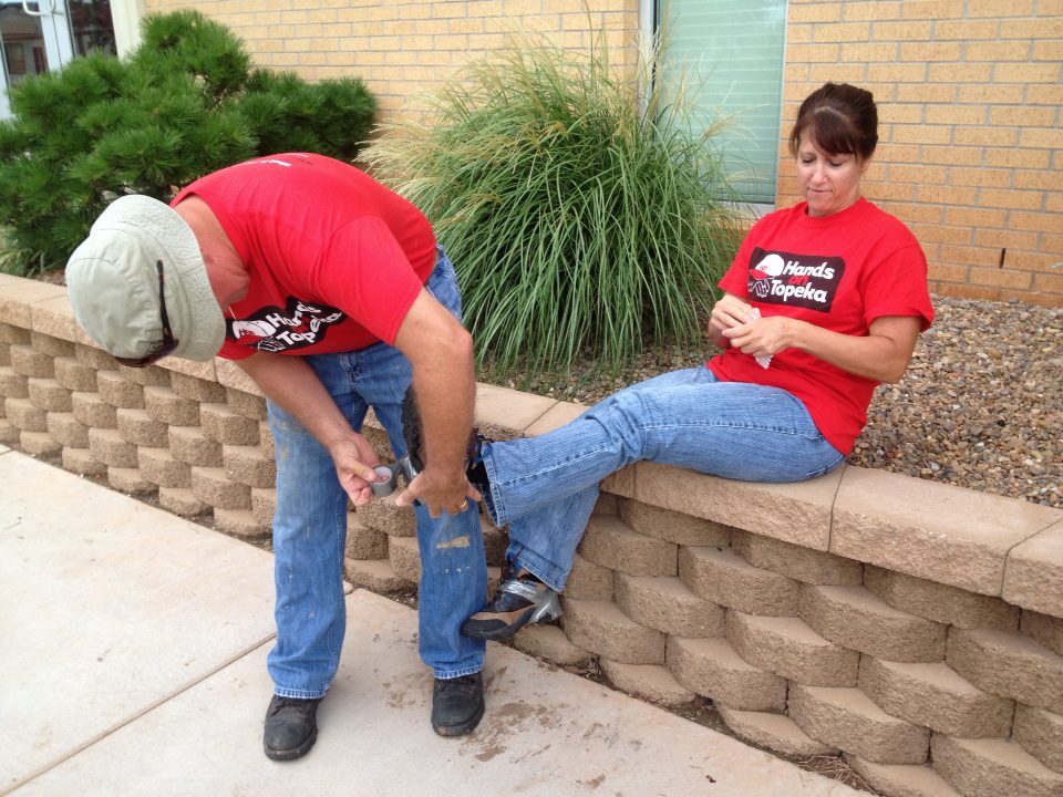 Brian works to hold Gayle’s boots together for the day.