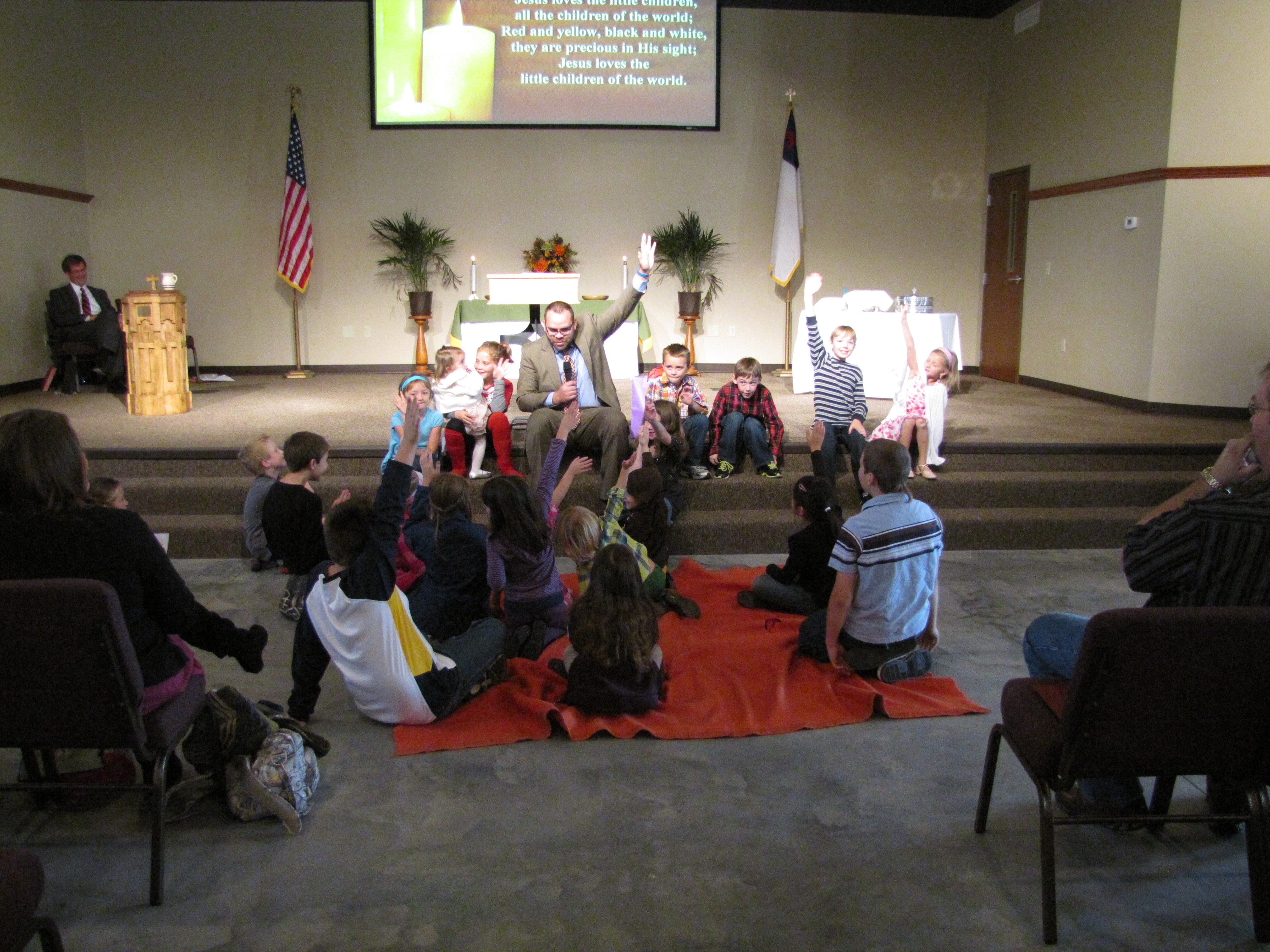 Pastor Justin shares with the children.